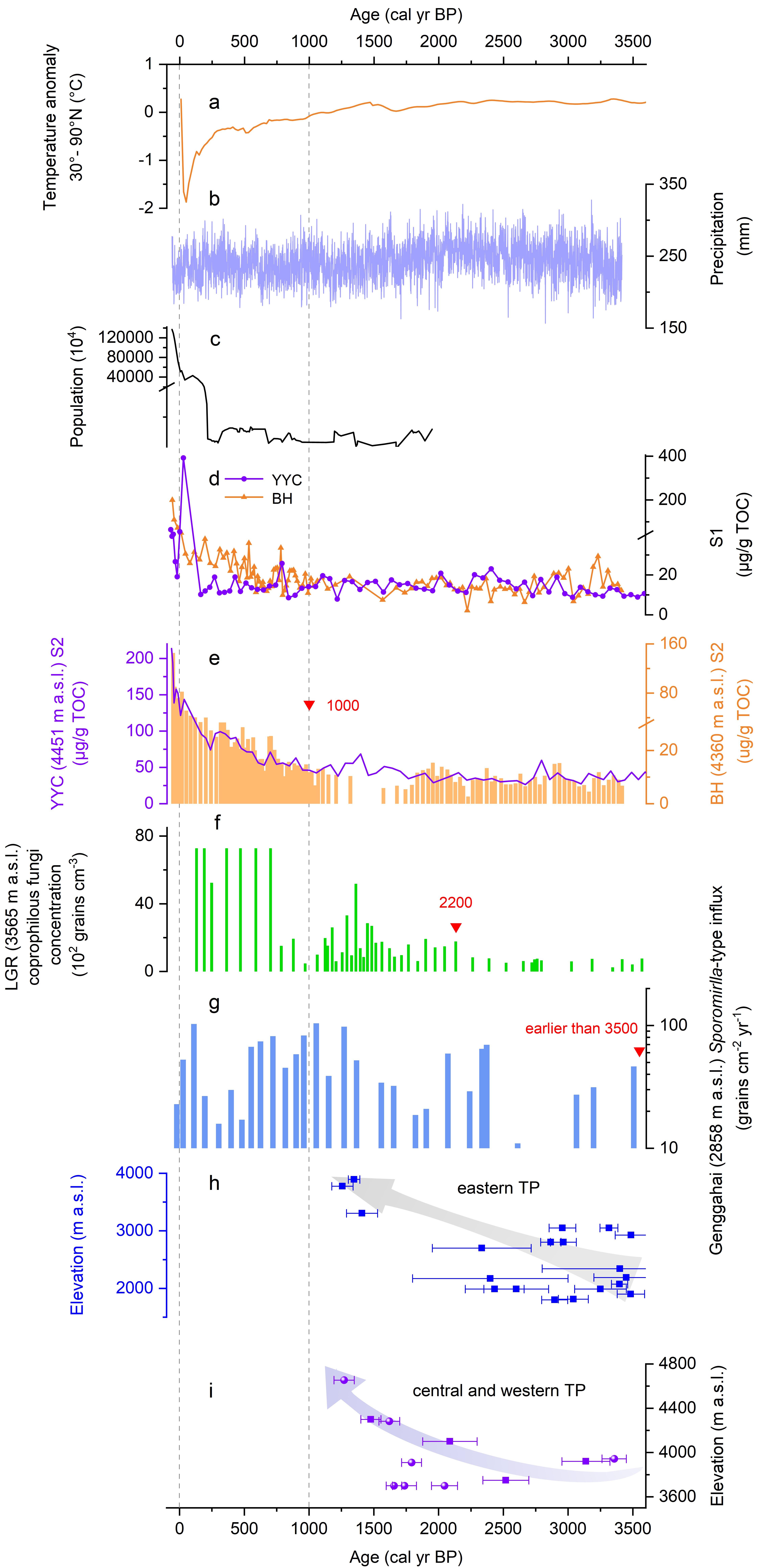 近日,兰州大学资源环境学院、西部环境教育部重点实验室吴铎教授课题组在《Quaternary Science Reviews》期刊在线发表了题为“Fecal stanol evidence from lake sediments reveals Late Holocene elevational expansion and intensified human activity of Tibetan Plateau rangelands”的研究论文。该研究基于青藏高原东缘高海拔湖泊沉积记录,利用地球化学指标粪便甾醇重建了研究区全新世人类活动强度和食草动物数量变化,结合不同海拔考古证据和其他牧业活动地质载体记录,揭示了青藏高原牧场向高海拔扩张的趋势,并提出人口压力是驱动这一扩张过程的关键因素。